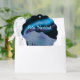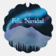 Les lumières du nord violet et bleu brillent au-dessus des montagnes enneigées par une nuit froide en Alaska. Le texte espagnol "Feliz Navidad" apparaît en bleu et blanc éclatant. Ajoutez votre propre texte supplémentaire à l'envers.