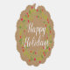 Carte classique de Noël ornementale avec le voeu de bienvenue "Happy Holidays" sur des baies vitrées rouges rustiques et le motif de couronne feuille vert sur un arrière - plan en papier kraft faux brun. Avec l'option de customiser ou de personnaliser avec votre nom de famille et (limité) le texte de votre choix.