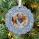 Carte d'ornement photo Joyeux Noël moderne - Arrière - plan bleu Dusty avec des flocons de neige. C'est une carte de voeux qui est aussi un ornement.