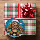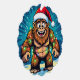 A funny Bigfoot Christmas paper ornament with a comic book style pop art sasquatch smiling with a Santa and Christmas lights on. You can personalized a message on the back and use it for a Christmas ornament or a gift tag.
