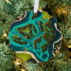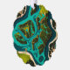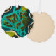 A vibrant aerial illustration of lush green islands and winding waterways, blending teal and emerald tones in a bold, futuristic style. This top-down view captures the intricate network of land and water, showcasing the unique beauty and architecture of floating landscapes.
