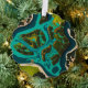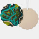 A vibrant aerial illustration of lush green islands and winding waterways, blending teal and emerald tones in a bold, futuristic style. This top-down view captures the intricate network of land and water, showcasing the unique beauty and architecture of floating landscapes.