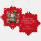 Accrochez un peu de fantaisie sur votre arbre cette année avec cet adorable gnome qui fait cuire des biscuits de Noël. De petits coeurs blancs autour du bord extérieur du flocon de neige ajoutent au charme de cet ornement. L'envers a un message spécial de conservation dans un joli script et vous pouvez ajouter votre nom de famille.