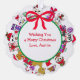Un adorable ornement de Noël et une étiquette cadeau qui peut être personnalisée. Gens et bonbons de Noël, bonbons de neige et manchots. Coloré avec rouge, vert et violet.