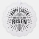 Joyeuses Pâques Il est ressuscité ornement en papier. Décoration de maison esthétique rétro vintage et décoration de cadeau. Citations de versets bibliques pour la foi chrétienne, cadeau religieux fidèle à Dieu Jésus.