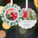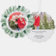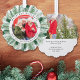 Happiest Holidays Watercolor Floral Wreath Photo Holiday Ornament Card Christmas Ornament Card propose une simple couronne de pin vert entourant votre photo préférée avec le texte superposé "Happiest Holidays" dans la typographie de script de calligraphie moderne avec l'année et personnalisée avec votre nom de famille ou texte personnalisé ci-dessous. Au verso, ajoutez une photo supplémentaire et votre message personnalisé. Parfait pour l'emballage cadeau de Noël et d'envoyer à la famille et les amis pour célébrer Noël et les fêtes. Conçu par ©2025 Evco Studio www.zazzle.com/store/evcostudio