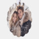Carte ornementale avec votre photo et le texte "Merry and Bright" dans une police de caractères élégante et décontractée et l'année ci-dessous. Ajoutez un message personnalisé à l'arrière. Arrière - plan vert clair ou couleur personnalisée. Style simple, élégant et minimal avec des arbres de Noël simples et une étoile.