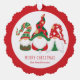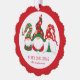 Carte de voeux de vacances mignonne qui peut aussi être utilisé comme un tag cadeau et un ornement d'arbre en papier. Le devant est composé de trois gnomes de style scandinave avec des casquettes rouges et verts saisonniers et vous pouvez personnaliser le salut "Joyeux Noël" et votre nom en bas. Ajoutez une photo à l'arrière.