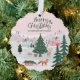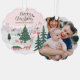 Célébrez la saison des fêtes magiques et festives avec notre carte de décoration personnalisée. Le design est composé de "Joyeux Noël" avec un village boisé chic et rose amusant avec des animaux de la forêt qui patinent et qui profitent des festivités autour d'un sapin de Noël et un renard tirant un traîneau et un sapin de Noël au premier plan. Customisé avec votre signature familiale et année. Au verso, vous trouverez une photo personnalisée pour afficher votre photo. Toutes les illustrations sont dessinées à la main par Moodthology Papery.
