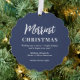 Carte de voeux bleu moderne qui peut aussi être utilisé comme une étiquette cadeau et un ornement d'arbre en papier. L'avant présente "Noël le plus joli" dans un script blanc élégant et une élégante typographie blanche. Personnalisez votre salutation, vos noms et l'année. Votre photo remplit le dos de la carte de décoration.