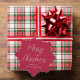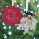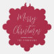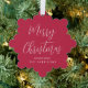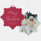 Carte de voeux moderne rouge qui peut aussi être utilisé comme une étiquette cadeau et un ornement d'arbre en papier. Le devant présente "Joyeux Noël" dans un script blanc chic et votre nom dans une simple typographie blanche. Votre photo remplit le dos de la carte.