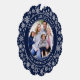 Carte d'ornement photo de Noël des Mer modernes et voeux - Arrière - plan de flocons de neige bleu et blanc de la Marine. C'est une carte de voeux qui est aussi un ornement.