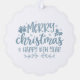 A woodland animal set of Christmas ornaments, all in blue with a blue text on the back