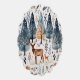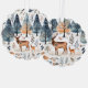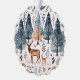 Illustration folklorique de cerfs dans une forêt d'hiver.