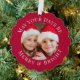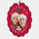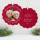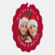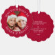 Carte de voeux moderne de Noël rouge qui peut aussi être utilisé comme un tag cadeau et un ornement d'arbre en papier. L'avant présente votre photo et "May Your Days Be Merry & Bright" dans une élégante police serif blanche. Sur le dos, personnalisez votre salutation et vos noms dans une simple typographie blanche.