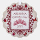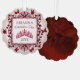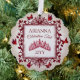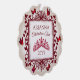 Fluttering red butterflies tree ornament is versatile for beige, burgundy and ruby red theme colors. Butterflies and gemstone tiara can easily be resized and repositioned on this Christmas ornament. Say congratulations with a burgundy red princess design. Decorative, leafy border beautifully surrounds your message.