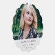 Moderne, simple ornement de fête de la photographie pour célébrer la vie de votre être cher dans un style moderne minimaliste élégant design. Le design modèle peut être facilement personnalisé avec votre propre photo et texte pour créer un hommage spécial à votre être aimé ou dans le cadre de leurs funérailles, mémorial ou célébration de la vie. L'image montrée n'est à des fins d'illustration que pour être remplacée par votre propre photo. L'image de l'espace réservé est celle d'une belle femme aux cheveux blonds courts portant un dessus botanique fleuri.