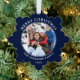 Carte d'ornement photo moderne Joyeux Noël - Arrière - plan bleu. C'est une carte de voeux qui est aussi un ornement.