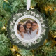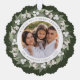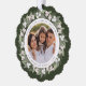 Célébrez la saison avec cette élégante carte de décoration botanique de Noël, avec votre photo de famille préférée encadrée d'une couronne de neiges, de fleurs de coton et de feuillage vert sauge sur un arrière - plan vert foncé. Personnalisez le front avec votre salutation de vacances personnalisée, nom, et l'année pour une touche significative et festive. L'arrière de la carte ornementale comprend de l'espace pour votre message personnel en lettres blanches, ce qui en fait un beau gardien pour partager votre joie de vacances avec des proches.