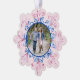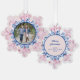 Ce design de Noël présente un flocon de neige rose et bleu sur un arrière - plan rose vif avec une photo. Vous pouvez personnaliser avec votre nom année.