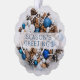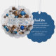 Une belle couronne d'ornements bleus et argentés, de cônes de pin et de Bonnes Fêtes (ou toute autre formulation) sur le devant de ces cartes de voeux en forme d'ornement en papier présente votre message de remerciement personnalisé et les noms sur le dos. Imprimé sur le papier de votre choix, par défaut est Pearl Ice, mesure 5,25" x 5,25" et inclut un ruban pour accrocher les cartes. PLUS de styles dans notre collection.