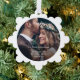 Célébrez un joyeux 1er anniversaire de mariage en tant que Monsieur et Madame avec un ornement de Noël de garde de papier photo personnalisé 2. Le libellé et les images sur ce modèle sont simples à personnaliser peuvent être différents ou les mêmes sur l'avant et l'arrière. (CONSEIL EN MATIÈRE DE PLACEMENT D'IMAGE : Une façon simple de positionner une photo exactement comment vous voulez est de la rogner avant de la télécharger sur le site Zazzle.) Le design minimaliste moderne en noir et blanc couvre les noms des couples et la date mariage dans la typographie de machine à écrire et deux images de votre choix. Ce décor de flocon de neige en papier unique est une façon élégante de commémorer une année de mariage et ajoute une touche élégante aux décorations de maisons de Noël des couples mariés. Joyeux Premier Anniversaire, Félicitations et Joyeux Noël !