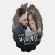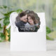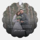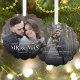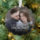 Cette carte de décoration minimaliste moderne et personnalisée pour jeunes mariés de Noël dispose d'un modèle photo de chaque côté, avec une élégante typographie de superposition "Mr. & Mme," avec le nom et l'année sur le devant, et un message personnalisé sur le dos.