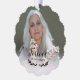 Mémorial ornement de Noël avec la photo de votre être aimé avec Forever dans nos coeurs comme une couche de verdure d'un côté, et le nom de votre être aimé et les années de vie de l'autre côté avec une colombe blanche, la verdure, et un arrière - plan rouge.