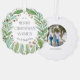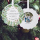 Le blanc pur est une toile de fond élégante pour les bouts entrelacés de branches feuillues qui encerclent un message de "joyeux voeux de Noël" accentués par des baies et des étoiles de fausse feuille. Personnalisez cette carte avec votre nom, l'année, un message personnalisé et votre photo au verso.