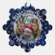 Cet ornement photo de famille de Noël est doté d'un délicat motif de flocon de neige argenté et d'une police blanche/grise contre un arrière - plan bleu dégradé étonnant. Accrochez-les sur un arbre de Noël ou utilisez-les comme étiquette cadeau unique. Veuillez vérifier les articles correspondants dans la collection des flocons de neige de Noël.