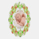 Soft Pretty Green Pastels Custom Christmas Photo Ornement. Jolly et Festive Pastels Green et Juicy Orange Custom Photo Cadres de Noël Tour Décoration Arbre de Noël. Une douce décoration circulaire de bauble pour votre joli arbre et décorations multicolores vert et orange. Le design de cadre est une joyeuse conception géométrique abstraction motif sur les modèles traditionnels de blocs de couleurs festives. Dans les couleurs pastel de l'arbre d'hiver vert et de l'orange vif pour un Wonderland d'hiver. Personnalisez-le en remplaçant les deux photos, à l'avant et à l'arrière, par les vôtres pour un cadeau de Noël à la famille et aux amis. La photo du stock montre un bébé qui dort. Cherchez vos souvenirs de Yuletide. Un grand cadeau pour les meilleurs amis, frères et soeurs, ou couples. Un cadeau de conservation abordable, pour les fêtes de famille ou les premiers Noël.