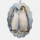 An arctic bird set of Christmas ornaments, all in blue with a blue text on the back