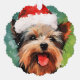 Design de Noël coloré et joyeux avec un Yorkshire Terrier portant un chapeau de Père Noël.