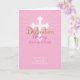 L'arrière - plan rose à croix blanche présente des rayons de pointillés venant du centre. Carte de bénédiction pour une petite fille. L'or numérique au mot Dedication ajoute une belle touche.