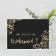 Carte d'élégante demoiselle d'honneur florale en or.