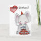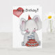 Une belle carte pour souhaiter un enfant "joyeux premier anniversaire" - de mon aquarelle originale de peinture sur le papier un éléphant de bébé avec un ballon en forme de coeur et un gâteau d'anniversaire merveilleux.