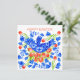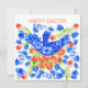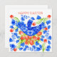 Un oiseau en finition Delft bleu parmi les Tulipes de Printemps. Illustrations Anni Arts dessinées à la main et peintes. Personnalisez votre salutation.