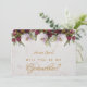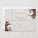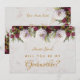 Cette élégante carte postale de demande de parrainage "Veux-tu être ma marraine" présente un fond marbré et des pivoines rouges blanches et burgondes sur sa moitié supérieure sur le devant et dans 2 coins au dos. Le titre "Marraine" et le nom sont écrits dans une élégante écriture calligraphique. Le message au dos est écrit dans la même écriture manuscrite. Tout le texte est de couleur jaune doré.