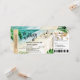 Destination de l'île tropicale Mariage sur la plage Carte d'embarquement Ticket Avion or Faire-part de mariage avec RSVP, cœur et icône d'avion avec feuilles tropicales