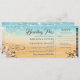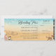 Invitation de billet de mariage de destination tropicale avec un fond ombré rustique jaune à bleu aquarelle, étoile de mer, coquillages, guirlande de lumières, deux cœurs dans le sable avec vos initiales et une section de réponse. REMARQUE : Vos invités devront découper la partie réponse de l'invitation et vous la renvoyer dans une enveloppe séparée (non fournie). La section de réponse mesure environ 3x4 pouces.