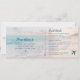 Une invitation de mariage de destination tout-en-un sur le thème de la plage qui ressemble à une carte d'embarquement de billet d'avion, avec une section que les invités DÉCOUPENT et renvoient par la poste sous forme de carte postale en réponse. Une superbe photo de coucher de soleil océanique de couleur sarcelle, pêche et rose est à l'arrière-plan avec un motif subtil de feuilles de palmier. *Aucune enveloppe de réponse supplémentaire n'est nécessaire pour que les invités renvoient les cartes. La partie carte de réponse auto-adhésive nécessite un affranchissement de carte postale moins cher, vous permettant d'économiser beaucoup sur vos invitations de mariage décontractées sur la plage. Les invités garderont un "talon" de billet avec toutes les informations importantes pour votre mariage, y compris les détails de voyage ou d'hébergement qui apparaissent au verso. Chaque partie de ce modèle d'invitation de mariage sur la plage peut être modifiée, des polices, des couleurs de texte et de leur emplacement,