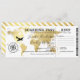 Invitation de mariage avec une carte du monde de destination en or élégant, une boussole, un avion, un modèle d'invitation de mariage personnalisé et une section de RSVP. REMARQUE IMPORTANTE : Vos invités devront découper la partie RSVP de l'invitation et vous la renvoyer dans une enveloppe séparée (non fournie). La section RSVP mesure environ 3x4 pouces.