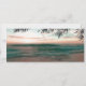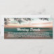 Cartes de détails de mariage à destination de plage avec un cadre de plage de palmiers tropicaux, des guirlandes de lumières scintillantes et un modèle d'informations de mariage moderne.