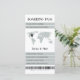 Voici notre carte "Save the Date" au style de carte d'embarquement électronique. Ce design unique présente une carte du monde avec une épingle de destination que vous pouvez déplacer, parfait pour les couples qui prévoient un mariage de destination. La carte est disponible dans une couleur sauge apaisante qui complète le design élégant. Avec un outil de personnalisation facile à utiliser, vous pouvez personnaliser votre carte avec vos noms, date de mariage et autres détails importants. Commandez maintenant et rendez votre journée spéciale encore plus mémorable ! Modifiez dans l'outil de conception pour déplacer l'épingle de localisation.