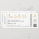 Carton d'embarquement élégant et moderne "Save the Date" pour un mariage à destination n'importe où dans le monde, avec un logo d'avion en faux or luxe avec un cœur au centre et des détails authentiques comme un code-barres, une attribution de siège et un code QR personnalisé que vous pouvez lier à votre propre site web de mariage. Les informations de voyage des invités sont incluses au verso afin que vous puissiez envoyer tous les détails sur une carte tout-en-un efficace avec des informations sur l'hébergement et le bloc de chambres, des événements supplémentaires du week-end, les coordonnées de l'agent de voyage, les informations de registre, et plus encore ! Fait partie d'une vaste collection de papeterie de mariage sur le thème du voyage unique et moderne par Paper Grape Destinations. Contactez le designer pour des articles et des idées de coordination.
