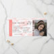 Ticket de mariage moderne carte d'embarquement monogramme avec un fond simple blanc et saumon, une photo du couple fiancé, un avion avec une traînée en boucle, et un modèle save the date personnalisé facile à personnaliser. N'oubliez pas de mettre à jour le texte du monogramme au verso.