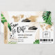 Ticket de passe d'avion de mariage de plage de destination avec l'icône de bateau de croisière avec des feuilles tropicales pour sauver la date