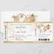 Invitation de mariage de destination avec carte d'embarquement billet or avion avec cœur et icône d'avion