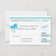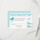 Carte de réponse de mariage avec carte d'embarquement correspondant à la carte d'embarquement de Chypre. Carte de Chypre avec des palmiers dans une couleur bleu océan.