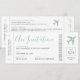 Carte d'embarquement simple billet d'avion carte de voyage avec le vert mousse doux et un logo d'icône d'avion amoureux romantique dans le coin peut être personnalisée pour un mariage de destination partout dans le monde et comprend des détails de voyage et des informations sur le site Web pour les invités à l'arrière. Beaucoup d'autres couleurs disponibles dans le Paper Grape Destinations Zazzle Shop ou contactez le concepteur pour des demandes personnalisées.